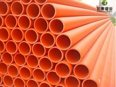 宏泰牌MPP(改性聚丙烯)电力电缆保护管具有抗高温、耐外压的特点,适用于10KV以上高压输电线电缆排管管材。管材常用规格为φ110~φ315,分为普通型和加强型。普通型适用于开挖铺设施工和非开挖穿越施工埋深小于4M的工程;加强型适用于非开挖穿越施工埋深大于4M的工程。